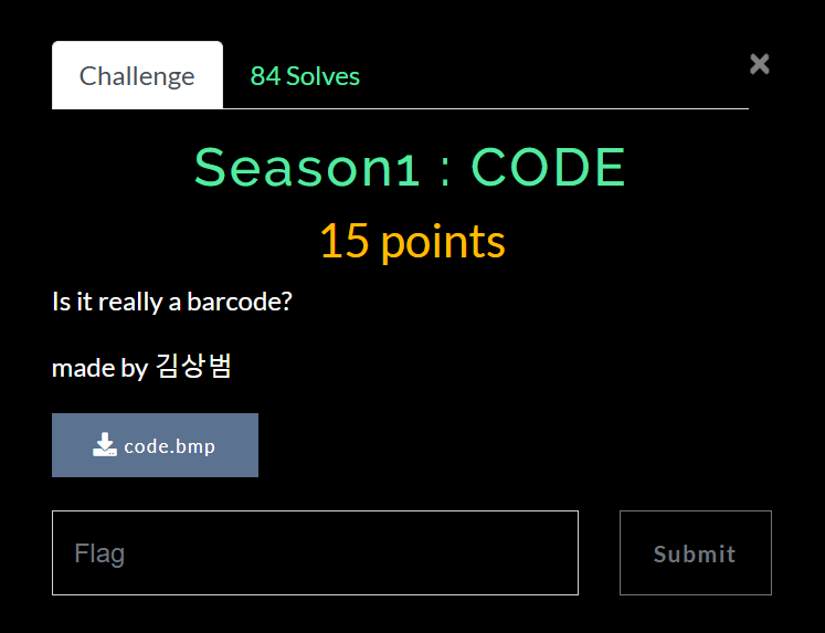 문제에서 주어진 code.bmp를 사진으로 열어볼 경우, 바코드+피아노처럼 생긴 사진이 뜬다.