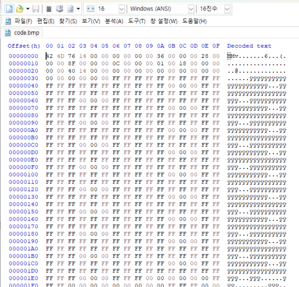 HXD확인 결과 00과 FF로 이루어져 있어 0과 1로 이루어진 바코드는 맞는 것처럼 보인다