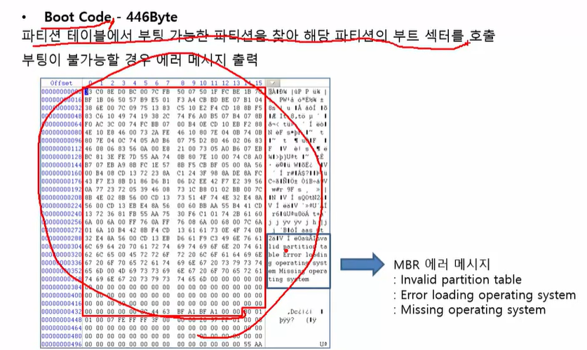 이런 식으로 나와야 한다. 맨 오른쪽에 보이는 알파벳이 섞여 보이는 곳이 MBR 공간임