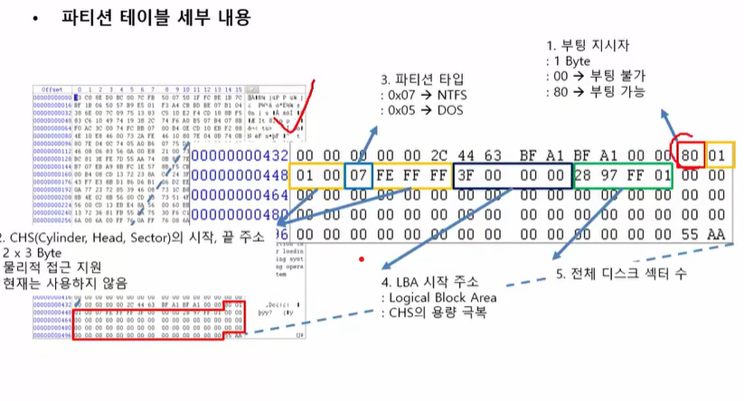 MBR -> 최대 4개의 파티션이 들어갈 수 있는 부트섹터 존재 // 디스크의 파티션에 대한 정보를 최대 4까지 등록 가능