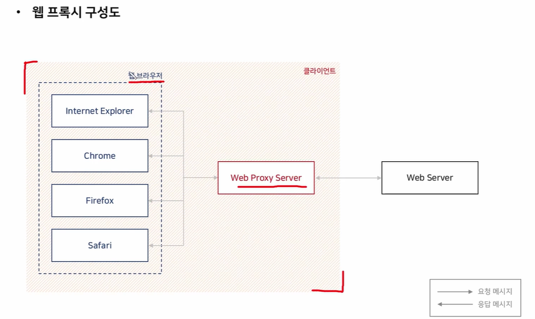 -웹 브라우저에서 웹프록시 서버에 전달/