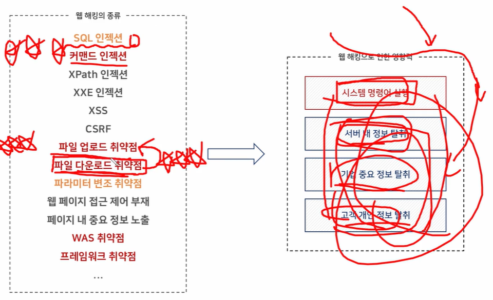 웹 해킹: 웹 서비스 상에서 발생될 수 있는 모든 보안 허점을 이용해 악의적인 행위를 하는 것