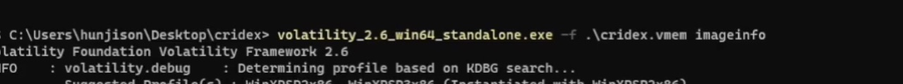 volatility -f <이미지>imageinfo // 메모리 덤프를 보고 어떤 운영체제의 메모리인지 찾는 명령어