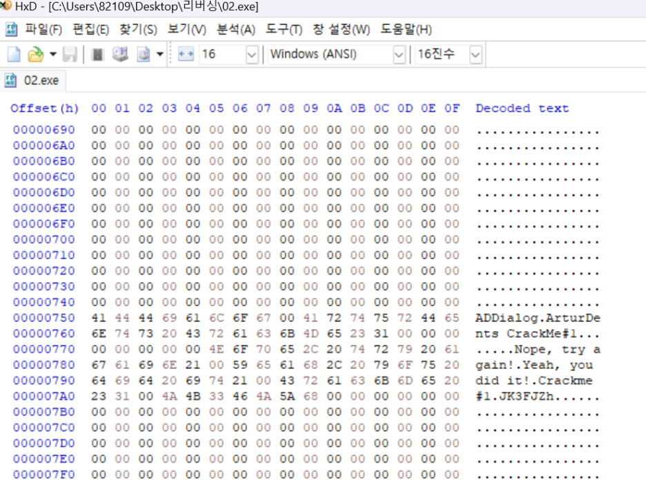 어떻게 해야할지 고민하다가.. HxD프로그램으로 해당 파일을 열어보았다.