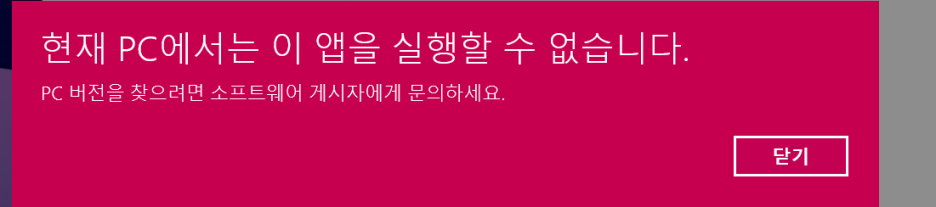 풀고 파일을 열어보니 위와같이 앱을 실행할 수 없다는 창이 올라왔고,