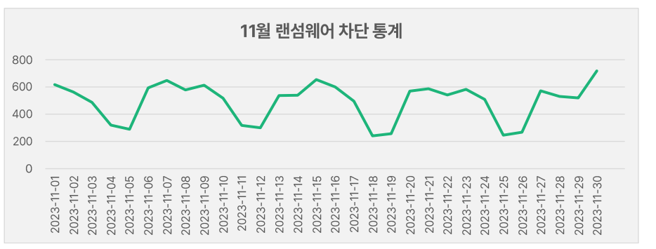 11/1 ~30 : 총 13279건의 랜섬웨어 공격시도가 차단됨 (백신알약에서)