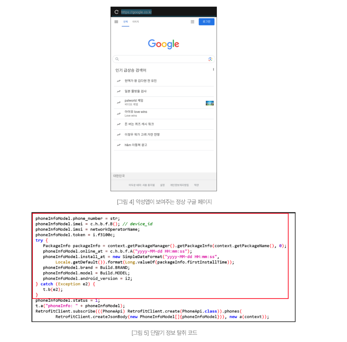 아래와 같이 사용자에게는 정상 구글 페이지를 보여주며 백그라운드에선, 정보탈취가 이뤄지는 것임