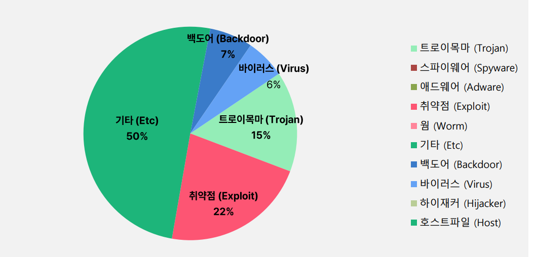 -> 12월 한 달간 확인되었던 8272127 건의 악성코드 경유지/유포지 URL 수에 비해 약 0.41% 가량 증가한 수치이다.