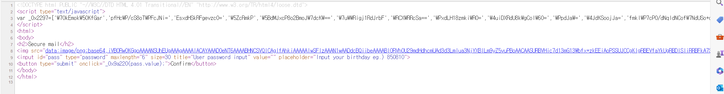 제공된 파일이 .html 뿐이라 우선 원본 소스코드를 보았다.